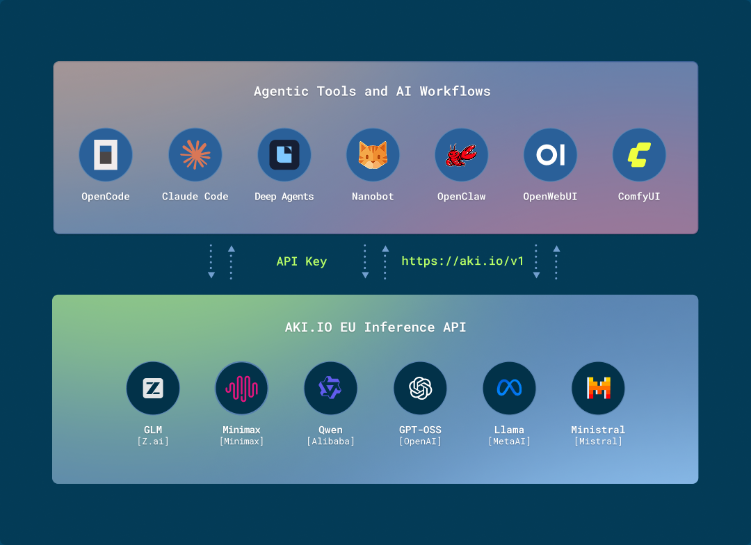 AKI.IO provides EU-hosted inference for open-source and open-weight models through an OpenAI-compatible API.